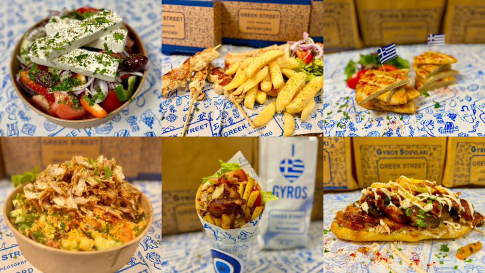 With chicken gyros, Greek Street sauce.Naxos